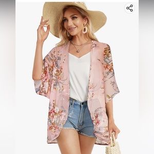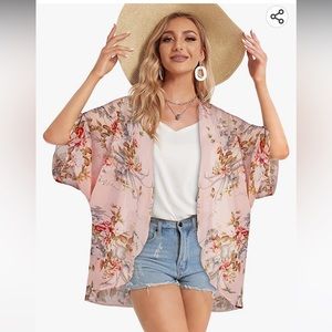 Floral kimono 143 Story by Line Up Swimsuit Coverup sz Medium sheer kimono cream