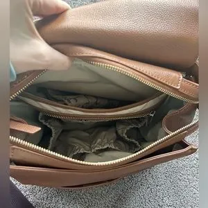 Only imperfections I see is the hardware and hardly noticeable wear on one corner on the bottom is worn from use as seen in photos