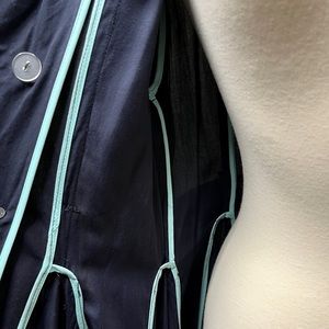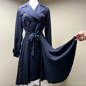 Anthropologie LRA Blue Coat Dress Size M 8 10 Button Front Fit-And-Flare Retro