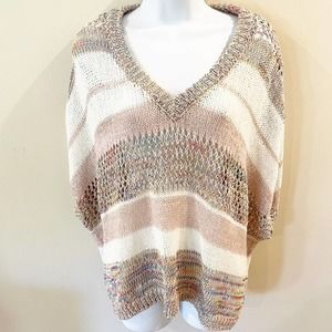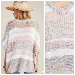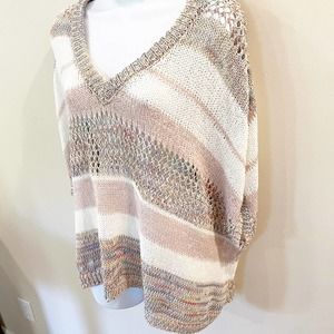-Open knit crochet poncho sweater