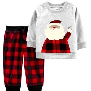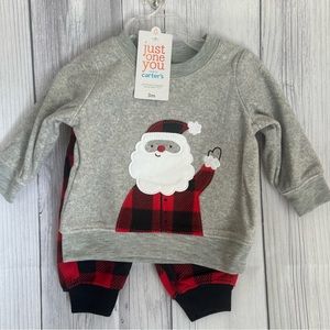 NEW! Carter's Christmas santa 2 piece buffalo checkered top and bottom 3 months