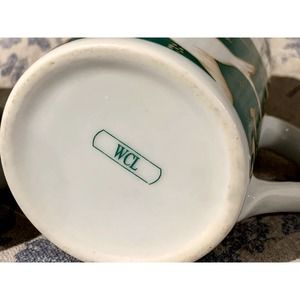 VTG Pair of WCL Green Mugs with Peace Doves and Ribbons