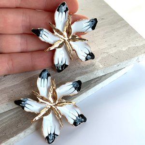 NEW ~ Anthropologie Black & White hand-painted Oversized Flower Earrings