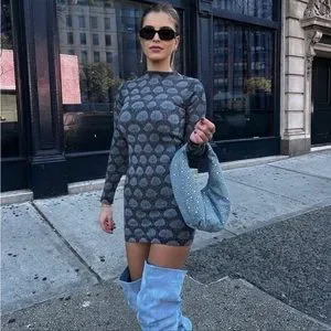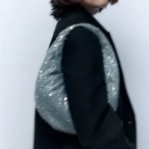 ZARA DIAMANTE OVAL SHAPED DENIM BAG