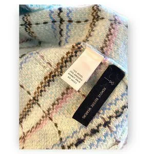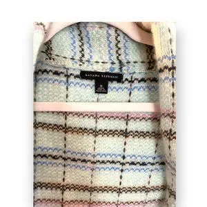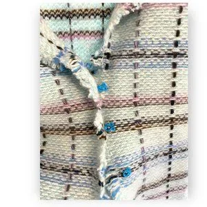 Banana Republic Wool and Angora Baby Blue/ Pink Fringed Blazer Size Medium.