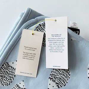 100% cotton interlock, machine wash, super soft and gender neutral. NWT, smoke free and no pets environment.