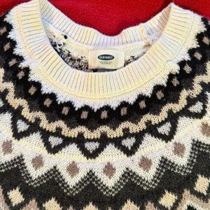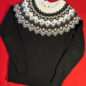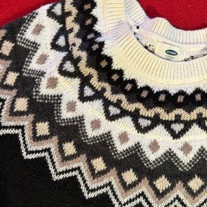 Old Navy - Fair Isle pullover sweater Size S - rib-knit - crew neckline - comfy and warm - width across the chest approximately 17" x length approximately 20" - very good condition as only worn/washed three times - small amount of pilling under the arms as shown in pics 7 - 8 - 58% cotton, 27% acrylic, 15% polyester - machine wash.