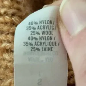 - 40% Nylon, 35% Acrylic, 25% Wool