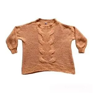 Aerie Happy Place Wool Blend Orange Cable Knit Oversized Sweater