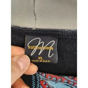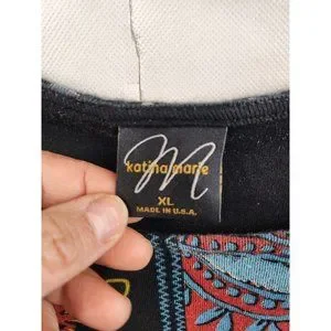 Katina Marie Womens Top XL Black Multi Mixed Patchwork Novelty Knit 3/4 Sleeve