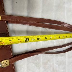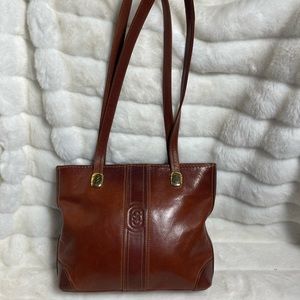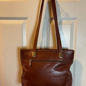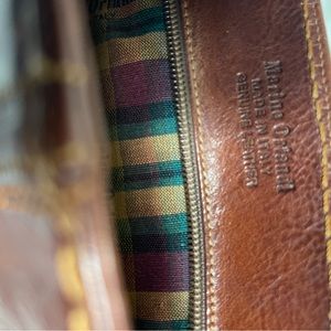 Marino Orlandi Vintage Leather brown Medium shoulder bag with gold tone accents top zipper the inside lining has a side zipper pre owned in good used condition normal wear see all pictures any questions please message.