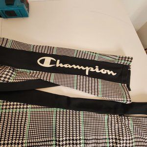 Champion Womens Plaid Elastic Draw Waist Joggers Size M Blk/Green Pockets NWOT