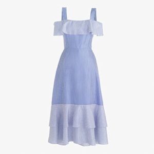 Lovely blue and white stripe Jcrew collection dress that shows off your shoulders while still bra friendly :)