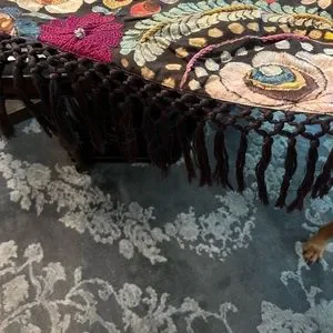 RARE ! Gorgeous embroidered and tasseled tablecloth in excellent used condition. Pictures don’t do it justice !