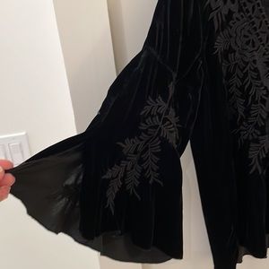 Johnny Was black on black velvet top. Gently worn from smoke free and animal free home. 18 inches pit to pit 24 inches long bell sleeve with slit. Classic Johnny Was beautifully embroidered top. Photos make embroidery look grey but it’s all black.