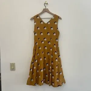 Frock Shop tank midi Dress Yellow black white Polka Dot Women Small S 2 4 6