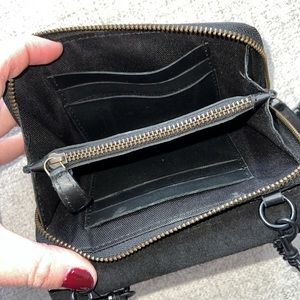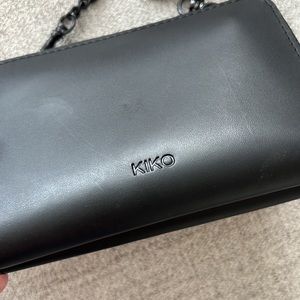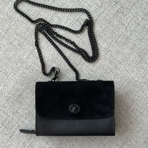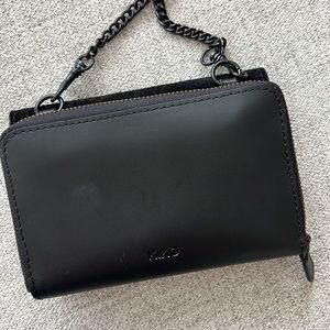 KIKO LEATHER TWO-TONE CROSSBODY | BLACK small wallet bag chain strap