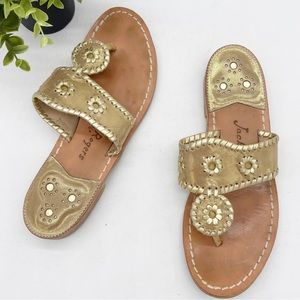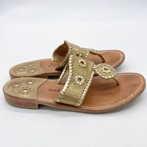JACK ROGERS Jacks Flat Gold Leather Whipstitch Thong Sandals