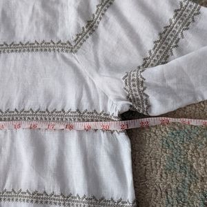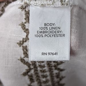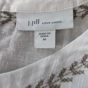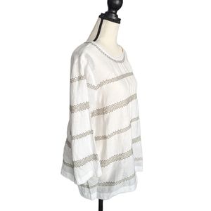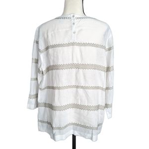 J Jill Love Linen Cross Stitch Casual Top White Sage Brush Size M