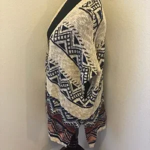 Almost Famous Bohemian Aztec Print Knit Open Front Sweater Oversized Dolman S M
