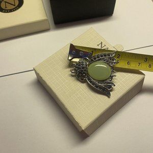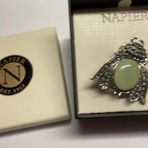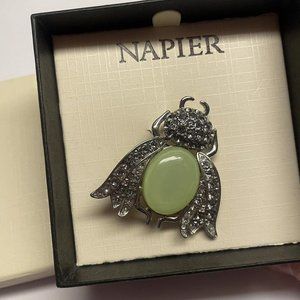 Napier Costume Jewelry Brooch Silver Tone Green Beetle Bug Rhinestone Insect