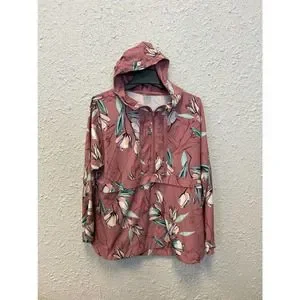 CALIA Anywhere Printed Woven Pullover Hoodie Floral Windbreaker Cinched Waist M