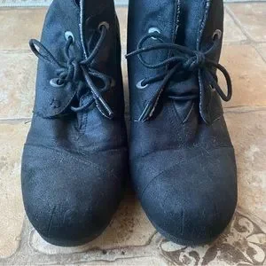 Maurices heeled wedge black booties size 9 with shoelaces. Super comfortable!