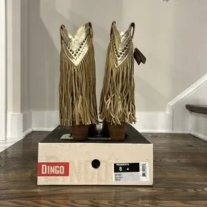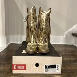 Dingo Gypsy Metallic Leather Fringed Embroidered Studded Western Boots