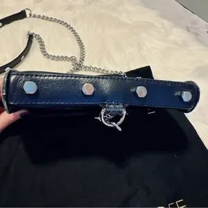 💙REBECCA MINKOFF Dark Navy Blue MAC clutch crossbody small medium silver chain