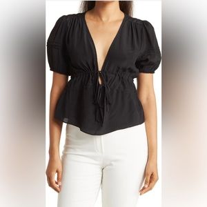 Nicole Miller silk tie front top, size P