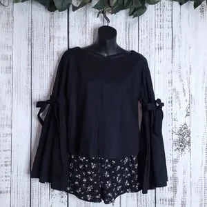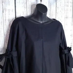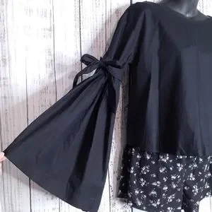 ◾Dramatic bell sleeves w/ adjustable bow accents & slight pleats on the sleeves where the bow ties at