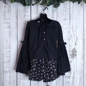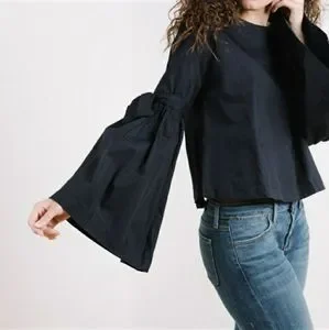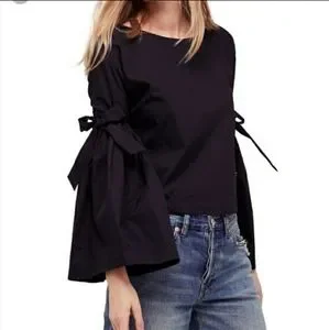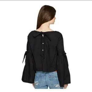Free People So Obviously Yours poplin bell sleeve blouse bow details & buttons