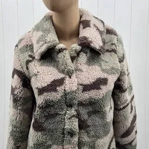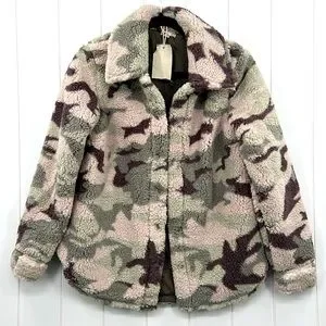 🆕Hem & Thread Camo Sherpa Fleece Shacket Green Brown Rose Beige Quilted Lined Last One Size Small Available