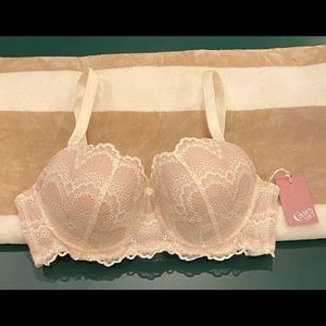 NWT Camio Mio Pink & Cream Lace Bra, Size 38C