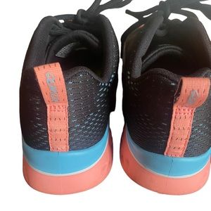 Gently worn Womens Sz 7.5 Black Pink and Powdered Blue Air Memory Foam Glide Step .All Day Comfort