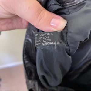 These are a gorgeous pair of vintage Michael Hoban for North Beach Leather leather pants with so many amazing details! They’re a gorgeous pair of black leather trouser pants with designer touched, cinches, and other amazing details! Soooo cool, and a great deal. Gently used, one small tear to the leather, but the lining below is still intact, so not a full hole.