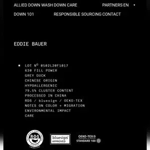 Responsible Down Standard (RDS) down 550 fill