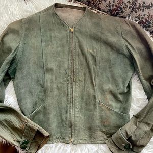 Antique Leather Jacket 1930s 40s Moto Biker Flapper Victorian Cossack XS Green
