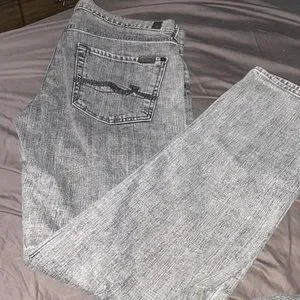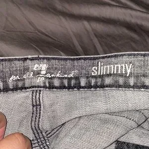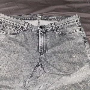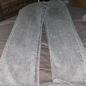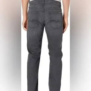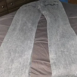 These men's jeans are a black/grey stone wash. On trend with the 80's and 90's. No flaws there appears to be a pull in the front but that's how they were when I purchased them. No flaws or defects.. Slimmy, straight leg. No returns. Pet friendly and non smoking home. Can be cut for a raw hem or into shorts for a retro look.💖🤩💖