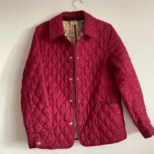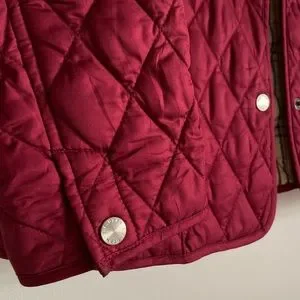 Stunning burgundy L.L. Bean jacket with quilted outershell and patterned lining. Water resistant and good insulation.