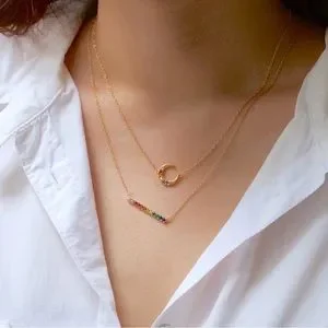 Coach mini rainbow park pave keeled necklace (bar necklace)