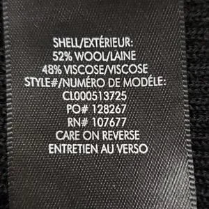 52% wool/48% viscose. Dry clean. Imported