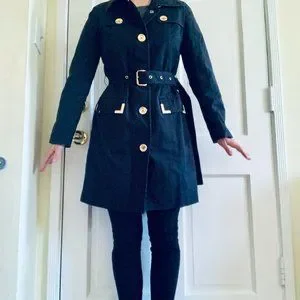 Michael Kors Trench Coat size small. Super cute and classic style! There is some tarnishing on the one part of the hardware as shown but it's not noticeable when on. Also, it does smell a little musty. Nothing like smoke or anythjng but it needs to be washed.