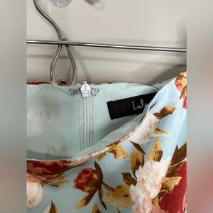 NWT - Lulu’s high-low, light blue with floral print maxi skirt. NEW!