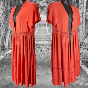 TORRID ORANGE GAUZE CROCHET DUSTER KIMONO Size 2 2XL 18/20 & 0 Large 12 NWT