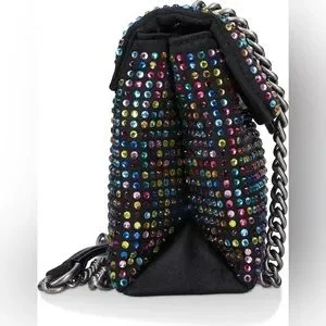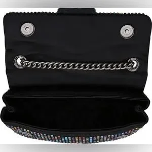 Kurt Geiger London Black Fabric Multicolor Rhinestone Medium Crossbody Bag