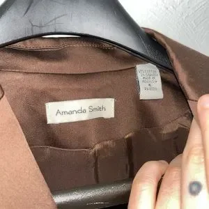 Excellent condition Amanda Smith chocolate colored blazer. Size 6. All buttons are still in tact, both in the front and on the sleeves of the blazer. Front pockets have not yet been opened.