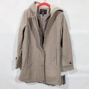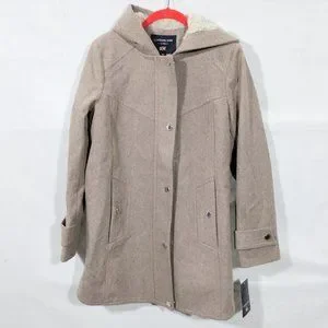 London Fog Sherpa Hood Wool-Blend Coat-Petite Small-Taupe Heather-New with Tags