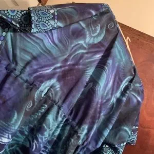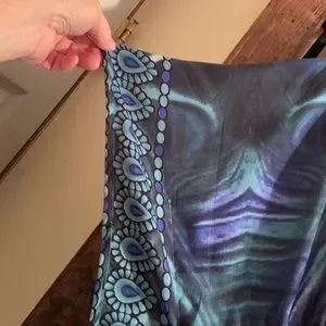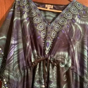Beautiful blue toned, decorative kaftan. Jovie one size fits all. Has high draw string.