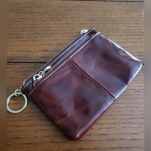 New never used, Brighton wallet/coin purse. Reddish brown leather. One small V-shaped mark, see last pic.